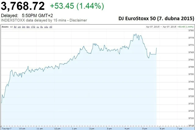 STOXX Europe 600 letos díky kvantitativnímu uvolňování Evropské centrální banky posílil už o 18 % a nachází se těsně pod svým rekordem z roku 2000.