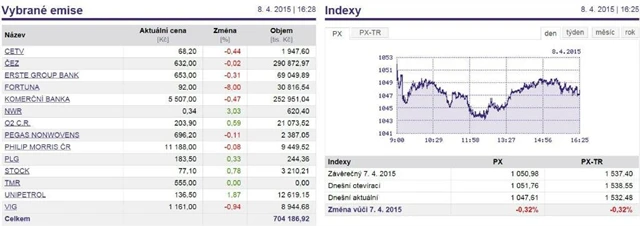 Index PX odepsal 0,32 % na 1 047,61 bodu.