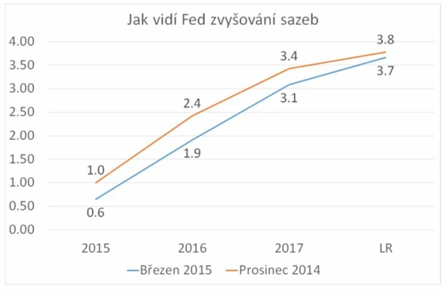 Fed v prohlášení po březnovém zasedání naznačil, že se blíží ke svému prvnímu zvýšení úrokových sazeb od roku 2006, podmínil to ale dalším zlepšováním trhu práce a jasnými známkami růstu nynější příliš nízké inflace. Podle očekávání z prohlášení vypustil slib, že bude při rozhodování o zvyšování úrokových sazeb "trpělivý".