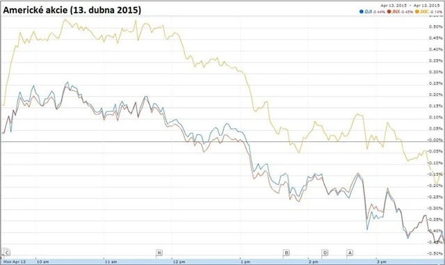Dow ztratil 0,45 %, S&P 500 0,46 % a technologický Nasdaq spadl s 0,15% ztrátou jen lehce pod nulu poté, co krátce překročil v průběhu dne hranici pěti tisíc bodů. V indexu Dow si nejlépe vedly akcie JPMorgan Chase, UnitedHealth a Travelers, dolů ho naopak stahovaly cenné papíry General Electric, Johnson & Johnson a Visa.