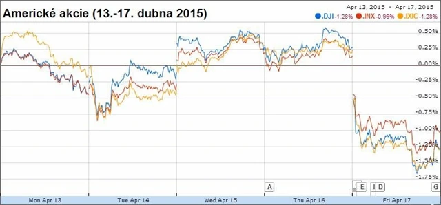 Americké akcie na závěr týdne výrazně ztratily a hlavní indexy na Wall Street odepsaly přes procento. Investory zklamaly výsledky některých velkých společností, a navíc trh oslabují kroky Číny v regulaci jejího akciového trhu. Investoři mají také stále větší obavy z krachu jednání mezi Řeckem a věřiteli a z bankrotu země.