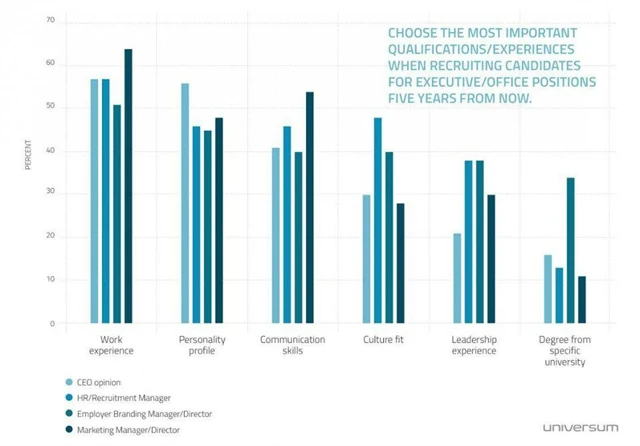 Nejdůležitější podmínkou pro získání práce jsou pro zaměstnavatele zkušenosti. "Pracovní trh se stále více posouvá k meritokracii, tedy k tomu, že se hodnotí talent, schopnosti a to, čeho kandidáti na novou práci již dosáhli, do pozadí naopak ustupují absolvované školy," říká Petter Nylander ze společnosti Universum, která ve svém výhledu za rok 2020 na základě více než dvou tisíc rozhovorů s řediteli, HR manažery, marketingovými pracovníky a těmi, kdo se starají o dobrou pozici firmy jako zaměstnavatele v očích uchazečů o práci (employer branding manažerů), odhalila šest aktuálně klíčových parametrů, podle kterých firmy vybírají pracovníky.