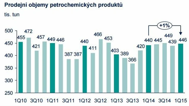 V petrochemické části stouply prodejní objemy o procento na 446 tisíc tun. Prodeje polyethylenu se zvýšily o 17 %, v případě polypropylenu o 10 %. Vysokou poptávku po polymerech ovlivňovalo zejména ekonomické oživení, nižší úroveň dovozů do EU a exportní zaměření některých evropských producentů na trhy mimo Evropu v důsledku oslabování eura vůči dolaru. Ethylenovou jednotku společnost využívala z 95 % výrobní kapacity.