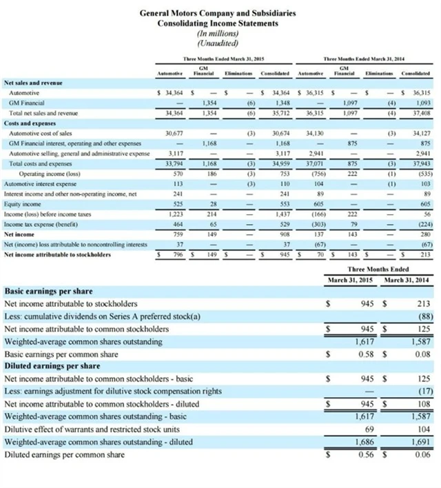 Největší americká automobilka General Motors (GM) v prvním čtvrtletí prudce zvýšila čistý zisk, který dosáhl 945 milionů dolarů. Před rokem, kdy byly výsledky ovlivněny rozsáhlými náklady na svolávání automobilů k opravám, zisk činil 125 milionů dolarů. Výsledek ale zaostal za očekáváním, mimo jiné kvůli slabé poptávce v Jižní Americe a v Rusku.