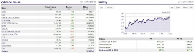 Index PX v pátek připsal 0,71 % na 1 049,40 bodu.