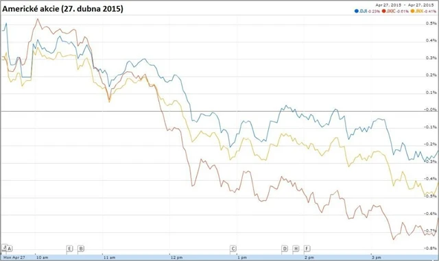 Dow odepsal 0,23 %, S&P 500 0,41 % a technologický Nasdaq 0,63 %. Nejlépe si v indexu Dow vedly akcie společností DuPont, Apple a Intel, dolů ho naopak stahovaly cenné papíry firem McDonald's, UnitedHealth a Pfizer. Index volatility VIX vzrostl o 6,75 % na 13,12 bodu a výnos 10letých vládních dluhopisů USA stoupl o dva bazické body na 1,92 %.