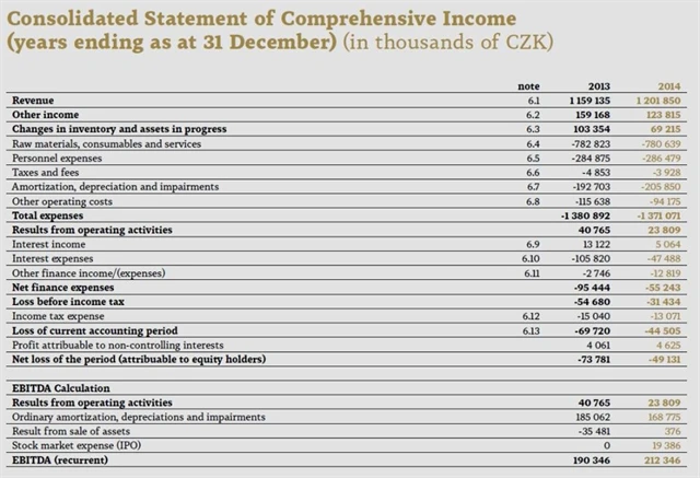 Na úrovni čisté ztráty byl výsledek skupiny pozitivně ovlivněn kapitalizací akcionářských půjček a podstatně nižším úrokovým zatížení.
