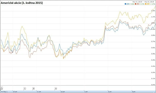 Index Dow připsal 1,03 %, S&P 500 1,09 % a Nasdaq 1,29 %. Nejlépe si v indexu Dow vedly akcie společností Apple, Home Depot a Intel, po zveřejnění hospodářských výsledků naopak ztrácela firma Chevron a v červených číslech se pohybovaly také cenné papíry společností Visa, Verizon a Microsoft.