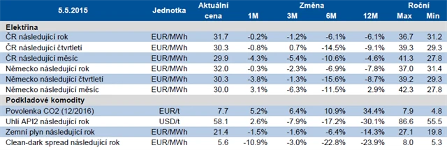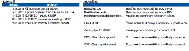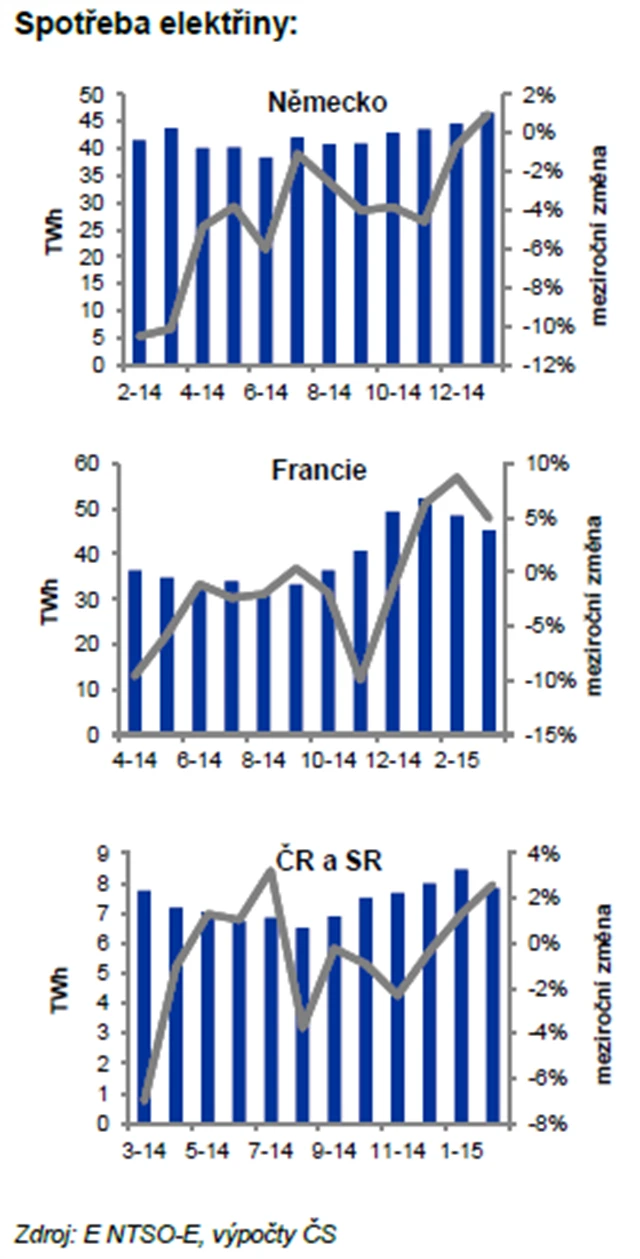 Spotřeba elektřiny v EU zatím na začátku roku ukazuje na asi 1% oživení, což však vzhledem k loňskému výraznému propadu není důvod k euforii. Nejistá je také situace v Řecku, a proto spready nejspíše krátkodobě neporostou. V delším výhledu zůstáváme ohledně vývoje spreadů optimističtí, mimo jiné i z důvodu zahájeného vyšetřování kapacitních trhů ze strany Evropské komise (viz níže).