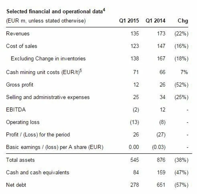Náklady na těžbu by v letošním roce měly společnosti klesnout zhruba na 65 EUR za tunu a kapitálové výdaje by měly dosáhnout 30-40 milionů EUR.