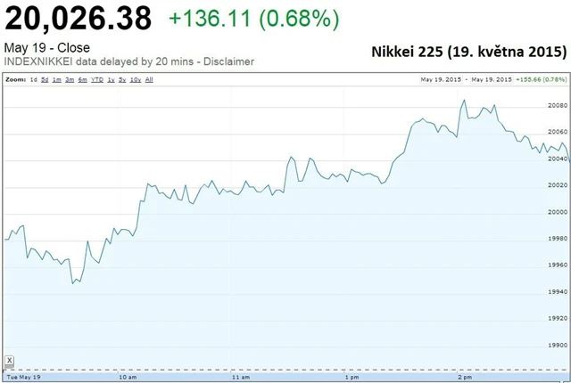 Japonský Nikkei 225 připsal 0,68 % a ocitl se tak nad hranicí 20 tisíc bodů. Zisk však brzdila obezřetnost investorů, kteří vyčkávají před středečním zveřejněním dat o HDP země v prvním čtvrtletí.