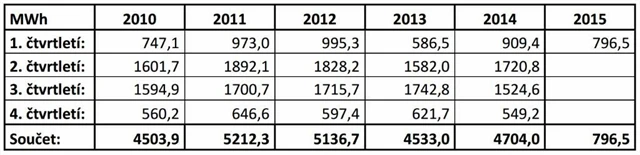 E4U v prvním čtvrtletí vyrobila 796,5 MWh elektřiny, dceřiná SANERGIE od října do března vydělala 3,7 milionu Kč