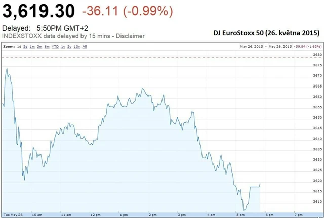 Evropské akcie zažívají nejdelší ztrátovou řadu za poslední tři týdny. Investory znervózňují dobrá americká makrodata, která by mohla vést k brzkému zvýšení úrokových sazeb v USA. Současně trhy znervózňuje nejistá budoucnost Řecka, jehož pokladna je již téměř prázdná.