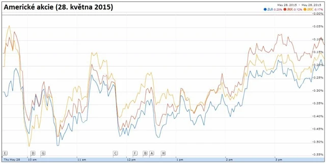Americké akcie ve čtvrtek mírně zlevnily. Trh srážela nejistota kolem Řecka a propad burzy v Šanghaji