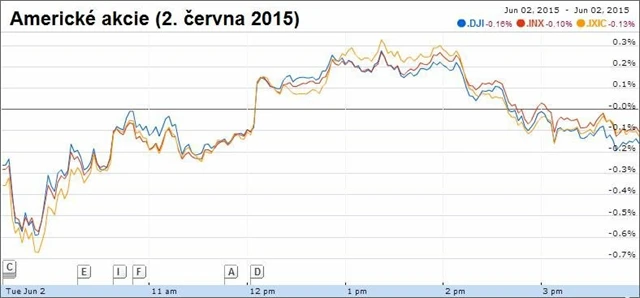 Investoři v USA vstřebávali nejnovější zprávy z ekonomiky a sledovali živý průběh vyjednávání Řecka s mezinárodními věřiteli.