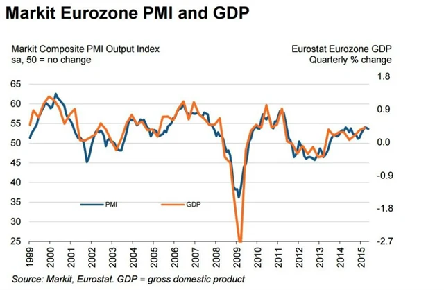 Sektor služeb v eurozóně v květnu expandoval pomaleji. Index nákupních manažerů klesl na 53,8 bodu z dubnových 54,1 bodu, podle předběžných dat se měl snížit na 53,3 bodu. Kompozitní index se snížil na 53,6 bodu z 53,9 bodu v dubnu, předběžná data počítala s poklesem na 53,4 bodu.