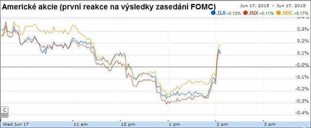 Americká centrální banka nechala v červnu úrokové sazby podle očekávání beze změny. Její měnový výbor ale po dvoudenním zasedání naznačil, že díky dostatečnému zotavení ekonomiky ze zimního útlumu je velmi pravděpodobné, že začne sazby zvyšovat ještě v letošním roce. Celoroční výhled ekonomiky je podle Fedu aktuálně horší, v posledních týdnech se ale výrazně zlepšil obrázek celého hospodářství.