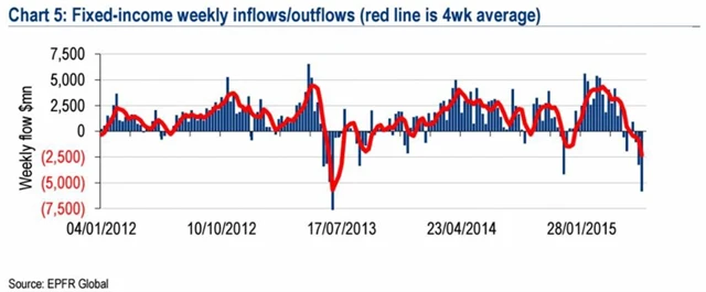 - V týdnu odteklo z amerických vládních dluhopisů největší množství peněz za několik let. Uvedla to Bank of America Merrill Lynch. Konkrétně šlo o 2,7 miliardy USD. Ve stejné době do evropských akcií naopak přiteklo 1,8 miliardy USD.