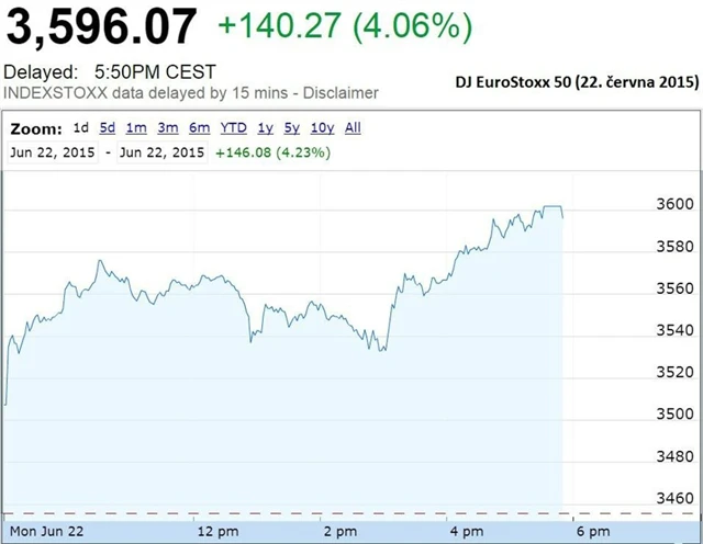 Nizozemský ministr financí a zároveň šéf euroskupiny Jeroen Dijsselbloem v pondělí oznámil, že během tohoto týdne by mohlo dojít k dohodě s Řeckem, což výrazně podpořilo náladu na trzích.