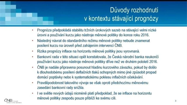14.25 Singer: ČNB neukončí používání měnového kurzu až do horizontu měnové politiky, tedy do druhého pololetí 2016, a je připravena kurzový závazek i posunout.