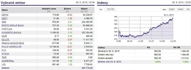 Index PX v pátek připsal 1,25 % na 995,38 bodu.