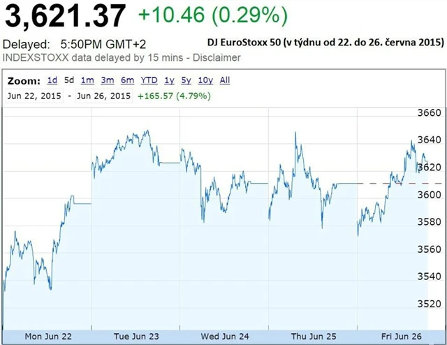 Evropské akcie v závěru týdne smazaly část zisků poté, co Řecko odmítlo nabídku věřitelů na prodloužení záchranného programu