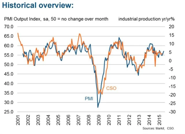 V červnu výroba v ČR vzrostla sedmadvacátý měsíc v řadě. Navíc tempo růstu vzrostlo na maximum za posledních pět měsíců. Firmy uvádějí zlepšující se poptávku z evropských trhů a v některých případech obnovení obchodu s Ruskem. Nové exportní zakázky rostly v červnu rychlejším tempem, některé firmy hlásí zvýšenou konkurenceschopnost díky silnému dolaru. Nové zakázky ve svém úhrnu rostly pětadvacet měsíců v řadě, rychleji než v květnu. Firmy hlásily nejen exportní poptávku, ale i zvýšený zájem z domácích trhů.