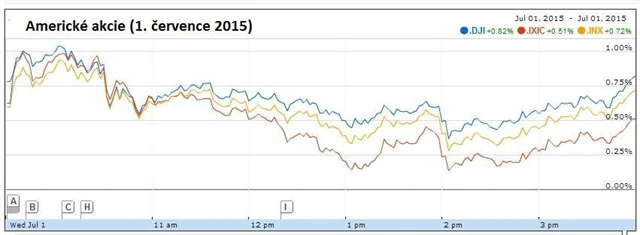 Akciové trhy v USA jsou nadále v nejistotě ohledně vývoje jednání mezi Řeckem a jeho zahraničními věřiteli. Zda dojde k dohodě a dalšímu uvolnění finanční pomoci, stále není jasné. Američtí investoři se ale nakonec ve středu dočkali povzbuzení a upnuli se k příznivým údajům o vývoji domácí ekonomiky, které akcie udržely v zelených číslech.