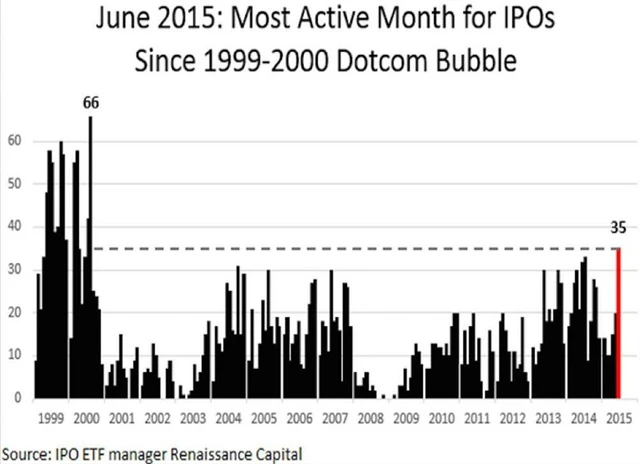 Červen byl v USA na IPO nejbohatší měsíc od srpna 2000V srpnu 2000 šlo na trh 66 firem, letos v červnu 35. Redakce IW3. 7. 2015 | 7:53Primární úpis akcií (IPO)Zdroj: Renaissance CapitalPodívejte se na aktuální videoAmerické akciePrimární úpis akcií (IPO)Redakce IW Další články autoraZtráta Photon Energy za prvních devět měsíců roku se prohloubila na skoro 10 milionů eurGevorkyan za prvních devět měsíců roku vykázal EBITDA skoro 23 milionů eurTOP 10 článků týdne: Udýchaný akciový býk, další velký SHORT a výhledy pro zlato a bitcoin DoporučujemeBitcoin má za sebou stovky pohřbů, ale odmítá zůstat mrtvýBitcoinAI euforie žene index S&P 500 do extrémů. Bank of America radí, kam teď "schovat" penízeDiverzifikace investicNervozita na Wall Street: Americké akcie zahajují čtvrtý rok býčího trendu učebnicově, situace připomíná rok 1998Americké akcie Aktualitydnes | 16:23Walmart jedná o převzetí startupu, který má potírat padělky na online tržištíchdnes | 15:58Klimtův portrét se prodal za 236 milionů dolarů. Ožívá trh s uměním?dnes | 15:41Americké akcie v úvodu: Dow +0,09 %, S&P 500 +0,53 %, Nasdaq Composite +0,86 %dnes | 15:15Evropa by mohla dostat plyn z nalezišť u Kypru už v roce 2027dnes | 14:42USA: Obchodní bilance se v srpnu výrazně zlepšila, deficit klesl na 59,6 miliardy USDdnes | 14:21Cena akcií Semrush vystřelila přes 70 % po zprávě o možné akvizici Adobednes | 14:08Společnost Lowe’s překonala odhady zisku díky silnému online prodejidnes | 13:55Goldman Sachs: V roce 2026 budou dále klesat ceny ropydnes | 13:50Larry Summers rezignoval z představenstva OpenAI po zveřejnění komunikace s Epsteinemdnes | 13:33Futures na americké akcie: Dow +0,18 %, S&P 500 +0,37 %, Nasdaq 100 +0,47 %dnes | 13:06USA: Index žádostí o hypotéky MBA k 14. listopadu stoupl o 6,37 % (předchozí týden: +6,34 %)dnes | 12:51Target snížil výhled zisku, tržby ve třetím čtvrtletí znovu kleslyZobrazit všechny aktuality
