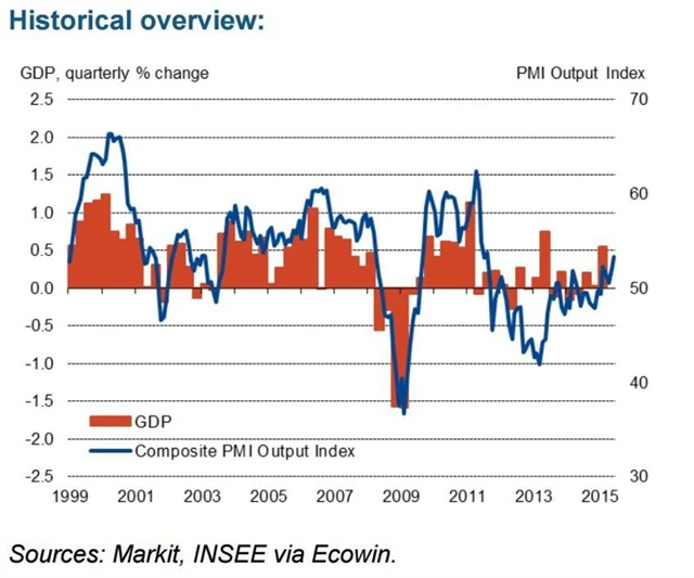 Index nákupních manažerů ve francouzském sektoru služeb v červnu vyskočil na 54,1 bodu po 52,8 bodu v květnu, jak předvídala předběžná data, tedy na nejvyšší hladinu od srpna 2011. Rychleji rostly nové zakázky i pracovní síla v odvětví, která pobízí firmy k tomu, aby najímaly nové zaměstnance. Kompozitní index se podle finálních dat rovněž vyšplhal na nejvyšší hodnotu od srpna 2011, a to na 53,3 bodu z předchozích 52 bodů, ačkoli se počítalo s růstem na 53,4 bodu.