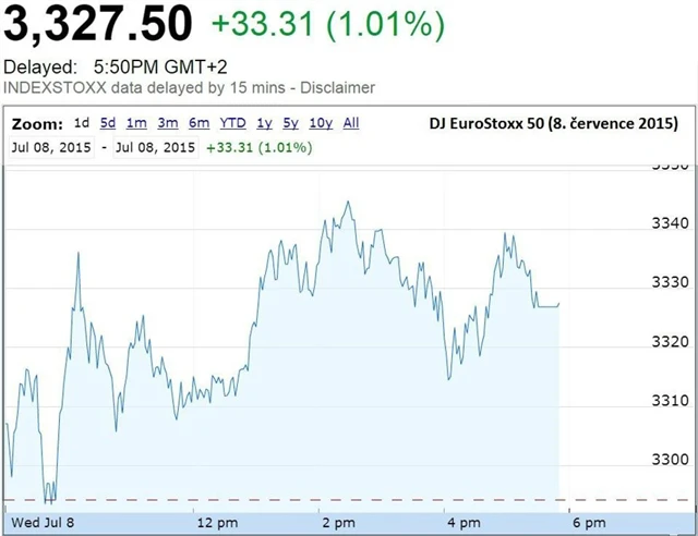 Italský FTSE MIB posílil o více než 2 % a portugalský PSI 20 o více než procento po 6% ztrátách z předchozích dvou dní. Bezmála procento připsal i španělský IBEX 35. Burza v Aténách zůstane stejně jako řecké banky zavřená až do pátku.