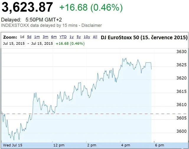 Trhy sledují jednání řeckého parlamentu, který by měl ve středu večer hlasovat o opatřeních, která musí přijmout, aby země dostala finanční pomoc od zahraničních věřitelů. Aténská burza sice stejně jako řecké banky zůstává zavřená, ETF fond sdružující řecké akcie na americkém trhu ale ve středu stoupl o 6 %.