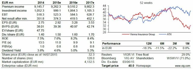 Nižší cílová cena reflektuje především o 14-16 % nižší výhled zisku EBT (zisk před zdaněním) pro období 2015-2017. Hlavním důvodem je revize očekávaných investičních zisků, které byly v minulém roce negativně ovlivněny znehodnocením dluhopisů Hypo-Alpe-Adria v hodnotě 80 milionů eur. Zároveň budou na investiční zisky pojišťovny podle Ungera negativně doléhat přetrvávající nízké dluhopisové výnosy v Evropě.