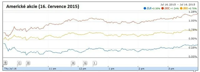 Akciové trhy ve Spojených státech ve čtvrtek skončily v zelených číslech díky pokroku při řešení řecké dluhové krize. K růstu cen akcií přispěly rovněž dobré čtvrtletní výsledky některých amerických podniků.