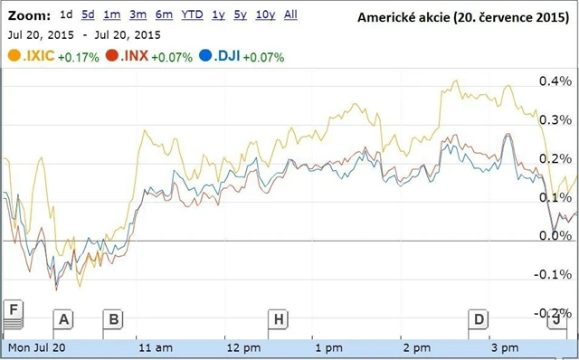 Americké akciové trhy zahájily týden dalším mírným vzestupem. Wall Street nadále podporovaly růst cen technologických akcií a uklidnění situace kolem Řecka.