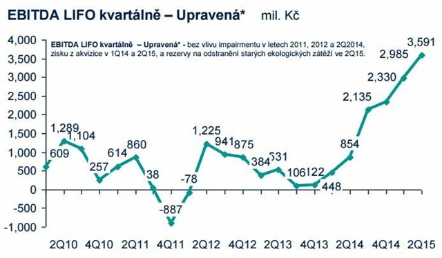 Petrochemická společnost Unipetrol oznámila, že v letošním druhém čtvrtletí hospodařila se ziskem EBITDA LIFO (provozní zisk před úroky, daněmi, odpisy a amortizací) téměř 4 miliardy korun. To je rekordní kvartální výsledek v historii společnosti. Firma uvedla, že jí pomohly příznivé marže, vynikající makroekonomické prostředí a solidní provozní výkonnost. Finanční ředitel Unipetrolu Mirosław Kastelik prohlásil, že možnost vyplacení dividendy z letošního zisku je stále ve hře. Záležet podle něj bude na akcionářích, respektive majoritním vlastníkovi firmy, kterým je polská PKN Orlen.