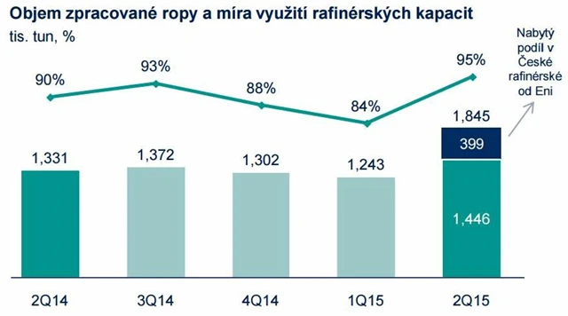 Společnost jela v období od dubna do června z pohledu využití rafinérských kapacit prakticky naplno. Celkové využití kapacit dosáhlo 95 %. Mezikvartálně tak stouplo o 11 procentních bodů a meziročně se zvýšilo o pět procentních bodů. Využití etylénové jednotky dosáhlo 89 %, mezikvartálně tak došlo k poklesu o šest procentních bodů, meziročně naopak ke zvýšení o procentní bod. Společnost nižší využití jednotky vysvětlila částečnou červnovou odstávkou provozu.
