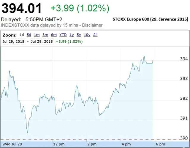 Akcie společností Bayer a Peugeot posilovaly o více než 4 % v reakci na lepší než očekávané hospodářské výsledky. GlaxoSmithKline zpevnil o 3,6 %, když oznámil menší pokles zisku, než se analytici obávali. Barclays po reportování výsledků přidala bezmála 2 %.