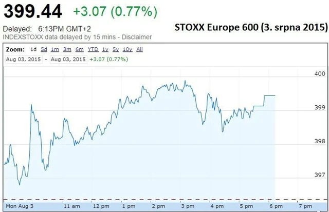 Britský FTSE 100 odepsal 0,11 %, francouzský CAC 40 naopak připsal 0,75 % a německý DAX 1,19 %. Regionální STOXX Europe 600 zpevnil o 0,77 %, a posílil tak již pátý obchodní den v řadě.