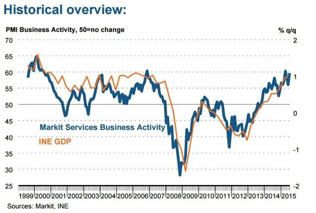 Růst podnikatelské aktivity ve Španělsku v červenci výrazně zrychlil. Kompozitní index nákupních manažerů vyskočil z červnových 55,8 bodu na 58,3 bodu a index sledující sektor služeb se zvýšil z 56,1 bodu v červnu na 59,7 bodu, očekával se přitom mírný pokles na 55,8 bodu. Růst zaměstnanosti zaznamenal nejprudší tempo od července 2007, rychleji rostla také produkce a nové zakázky, a v růstu pokračují i ceny výstupů.