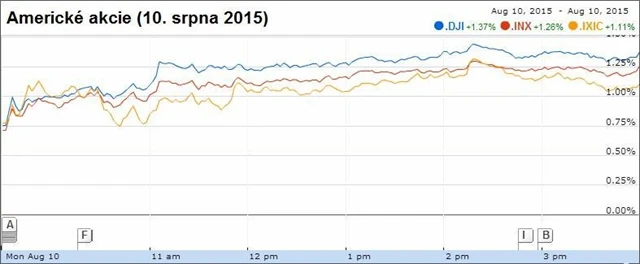 Neuspokojivé údaje z čínské ekonomiky posílily naděje na další podpůrná opatření ze strany Pekingu. Řecko a mezinárodní věřitelé se mezitím podle všeho blíží dokončení dohody o třetím záchranném programu pro tuto zemi, která by tak mohla získat až 86 miliard eur.