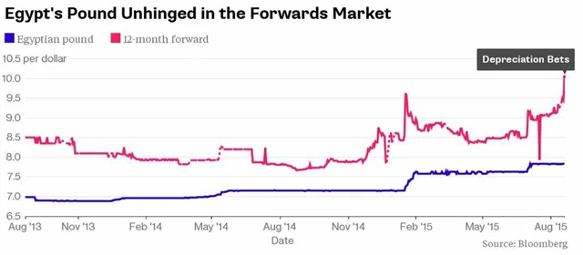 Možnost devalvace se vznáší i nad egyptskou librou. Obchodníci spekulují, že by egyptská libra mohla během příštích dvanácti měsíců přijít až o 22 % své hodnoty.