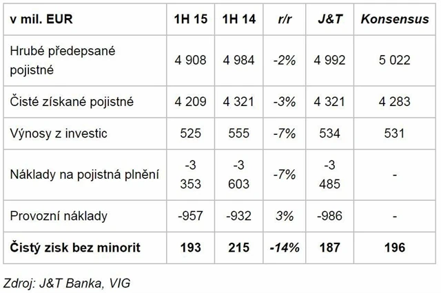 "Celkově jsou pro nás zveřejněná čísla neutrální. Oproti naší projekci je nižší pojistné kompenzováno nižším plněním a nižšími provozními náklady. Zisk za první polovinu roku tvoří přibližně 51 % námi projektovaného celoročního zisku," okomentoval výsledky VIG analytik z J&T Banky Milan Lávička.