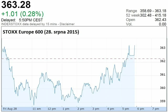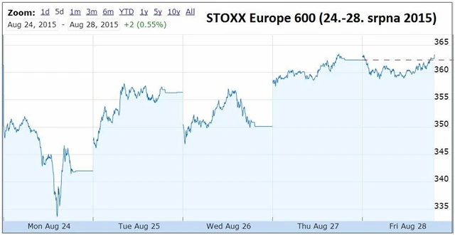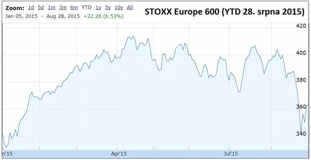 Nejen evropské trhy v týdnu zasáhly masivní výprodeje poté, co na konci minulého týdne z Číny přišla data, která zvýšila obavy investorů z dalšího vývoje čínské a světové ekonomiky. Výrazný propad burzy zasáhl v pondělí, kdy se hlavní indexy sesunuly o pět procent. V úterý burzy prudký pondělní propad korigovaly a zdražily, ve středu se vrátily do červených čísel a ve čtvrtek opět zdražily. Index STOXX Europe 600 v pondělí zažil nejhlubší propad od roku 2008.