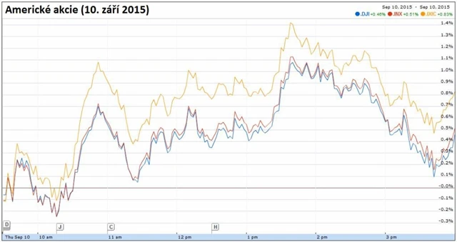 Americká vláda ve čtvrtek oznámila, že počet nových žadatelů o podporu v nezaměstnanosti v USA minulý týden klesl. To byla příznivá informace, která posílila naději, že by Fed mohl již příští týden zvýšit úroky. Další údaje však ukázaly, že dovozní ceny minulý měsíc klesly o 1,8 %, což vyvolalo obavy o inflaci a nahrálo tomu, že by Fed mohl se zvyšováním úroků počkat.
