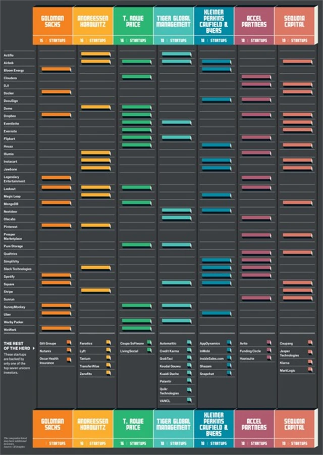 Podle výzkumné společnosti CB Insight se Goldman Sachs od roku 2009 zúčastnila již více než 130 kol financování soukromých technologických společností, z toho téměř 80 v posledních dvou a půl letech. Banka peníze vložila mimo jiné do provozovatele alternativní taxislužby Uber, cloudového úložiště Dropbox či obrázkové sociální sítě Pinterest.