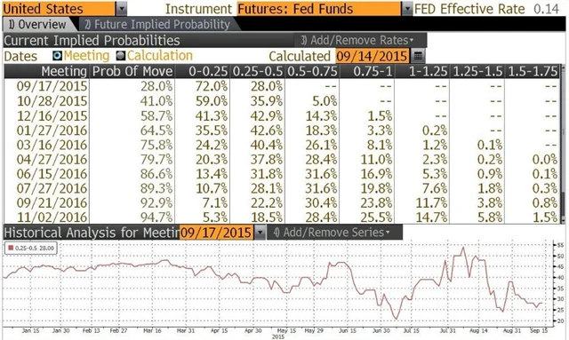 Aktuální nálada na trzích ale jestřábům příliš nepřeje – investoři jsou před zasedáním Fedu nervózní a akcie jsou téměř 10 % pod červencovými maximy, přičemž relativně silný dolar (spolu s levnými komoditami) vyčaroval v posledním měsíci rekordní propad dovozních cen. Kromě toho některé ze členů měnového výboru Fedu začal znervózňovat také vývoj v Číně, kde zatím nelze s jistotou říci, zda ekonomiku nepotká tvrdé přistání.
