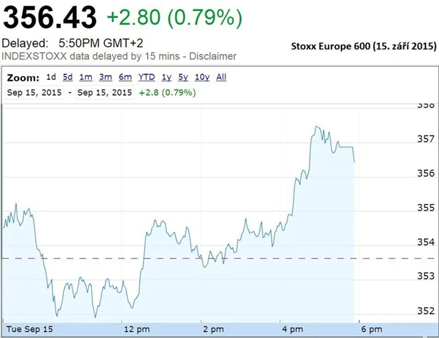 Britský FTSE 100 připsal 0,87 %, francouzský CAC 40 1,13 % a německý DAX 0,56 %. Regionální STOXX Europe 600 posílil o 0,79 %, nahoru ho vedly automobilky a ropný sektor. Trhy navíc pozitivně přijaly slabší americká makrodata, která by mohla oddálit rozhodnutí Fedu o zvyšování sazeb.