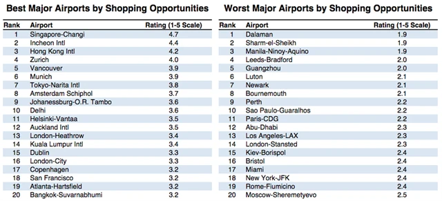 Spíše než komplexní hodnocení letišť jsou ale zajímavé žebříčky sestavené pro jednotlivé kategorie.
