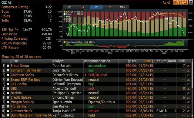 Analytik Petr Bártek z České spořitelny potvrdil doporučení "akumulovat" na akcie energetické společnosti ČEZ, snížil ale jejich cílovou cenu na 580 Kč ze 728 Kč z důvodu nižších cen elektřiny. Současně snížil doporučení na cenné papíry telekomunikační firmy O2 Czech Republic na "držet" z "akumulovat", ale zvýšil jejich cílovou cenu na 236 Kč ze 109 Kč.